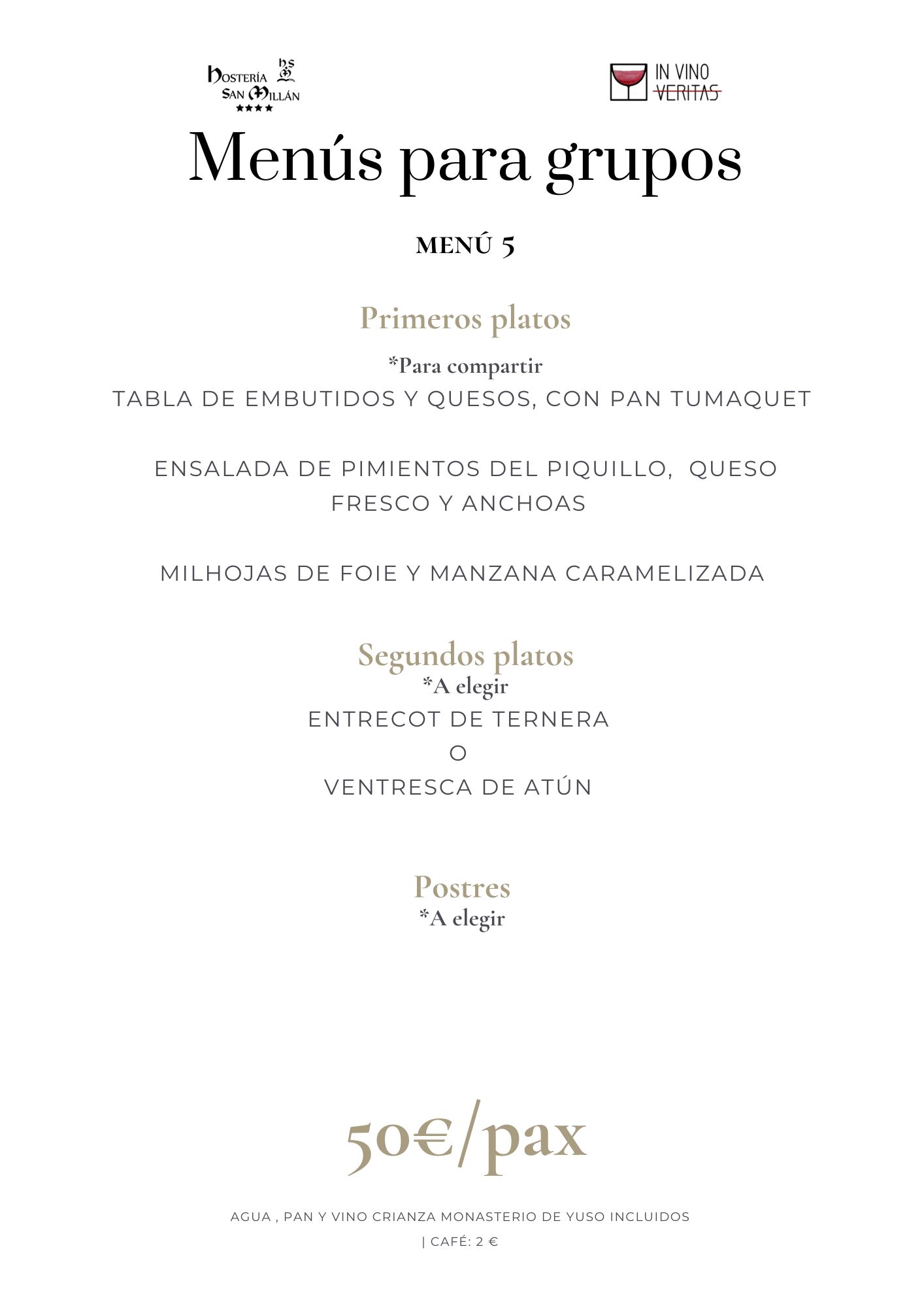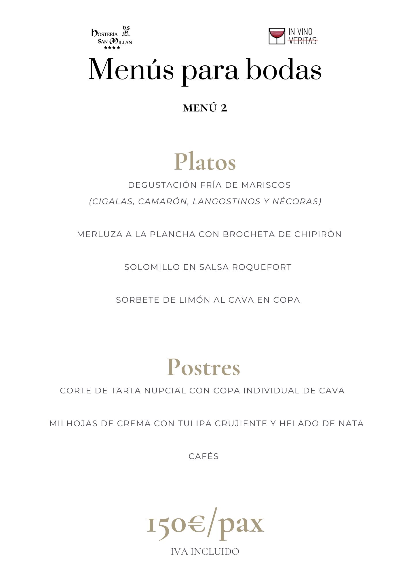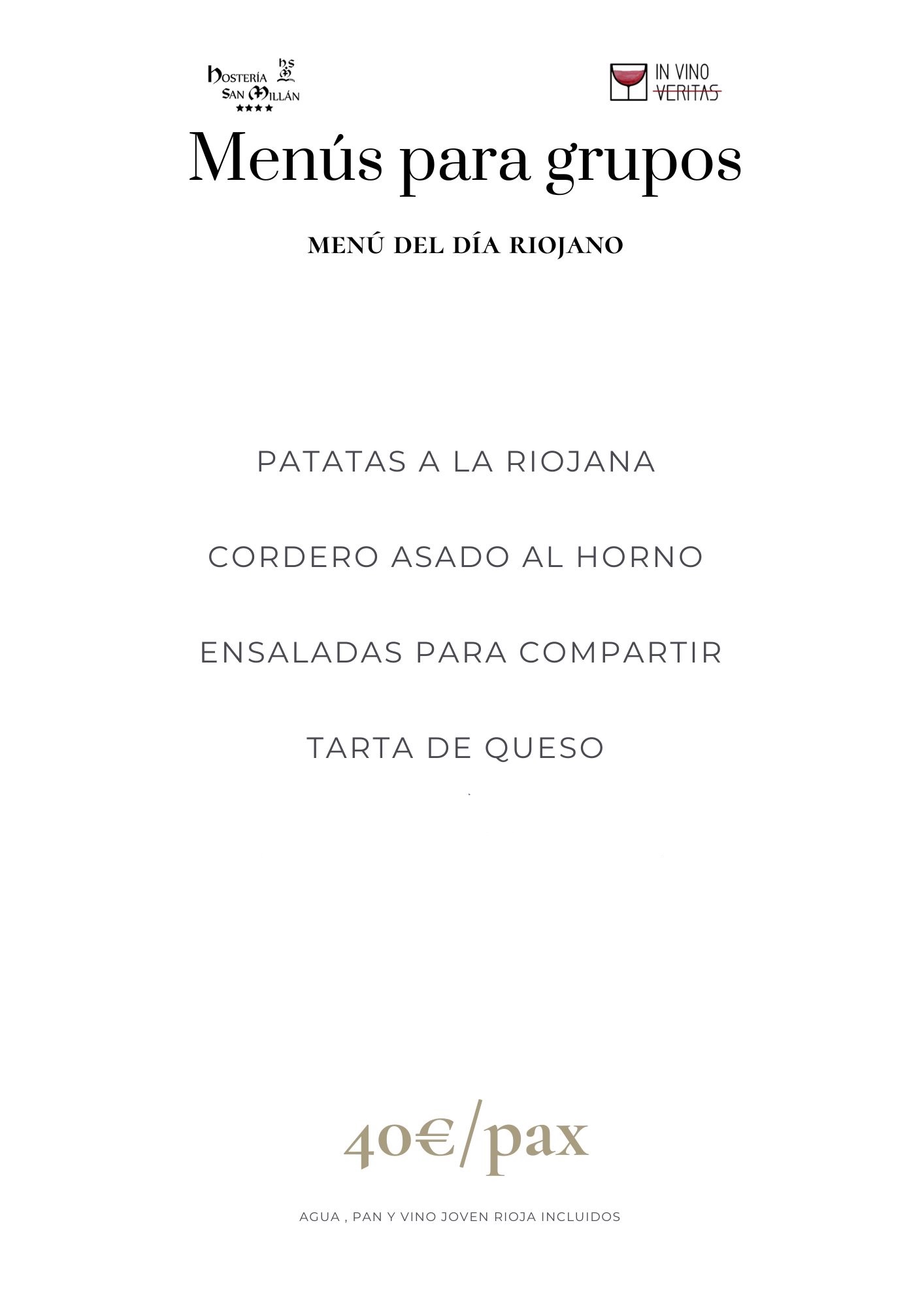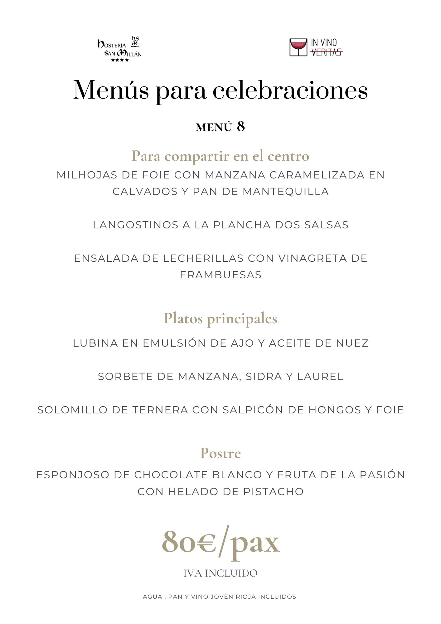 En Hostería San Millán y nuestro restaurante «In Vino Veritas» ofrecemos menús personalizados para grupos y eventos. Propuestas gastronómicas de todo tipo diseñadas para satisfacer todos los paladares y ocasiones. Desde viajes de grupo, hasta eventos corporativos, familiares o bodas con encanto.