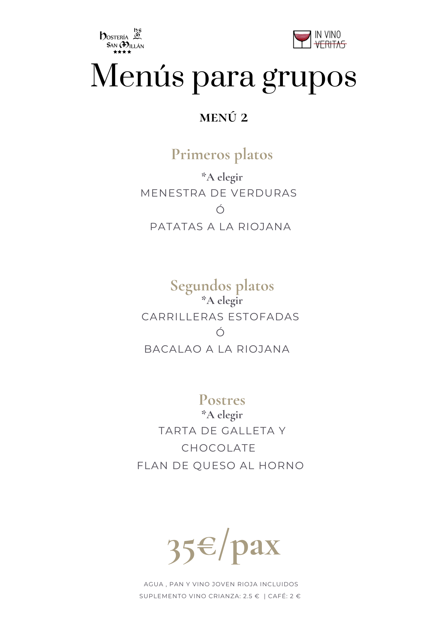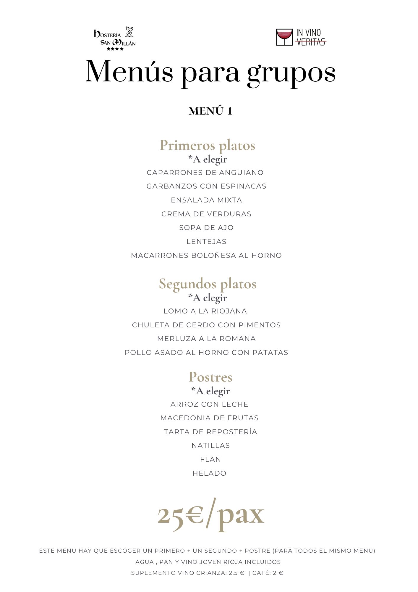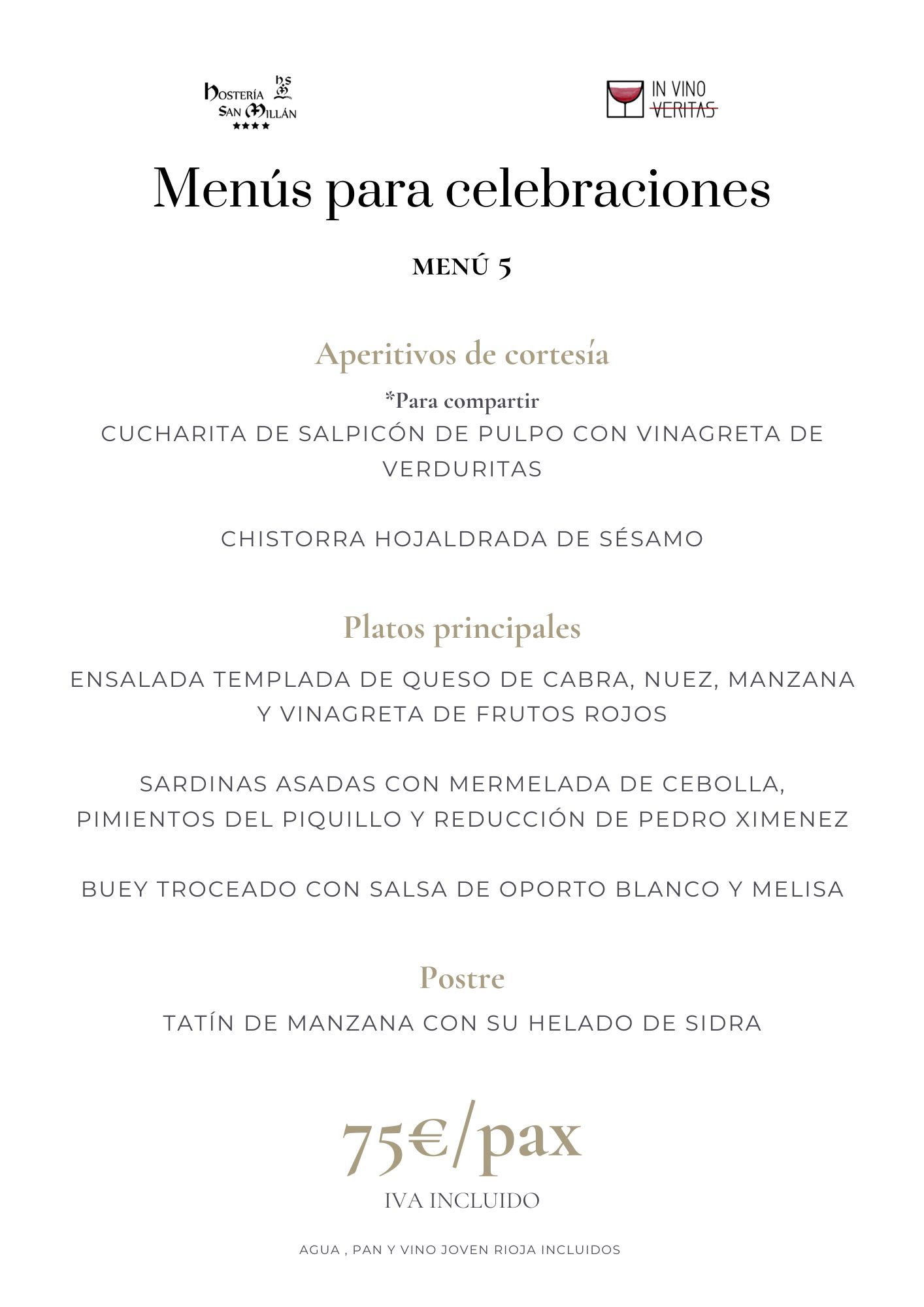 En Hostería San Millán y nuestro restaurante «In Vino Veritas» ofrecemos menús personalizados para grupos y eventos. Propuestas gastronómicas de todo tipo diseñadas para satisfacer todos los paladares y ocasiones. Desde viajes de grupo, hasta eventos corporativos, familiares o bodas con encanto.