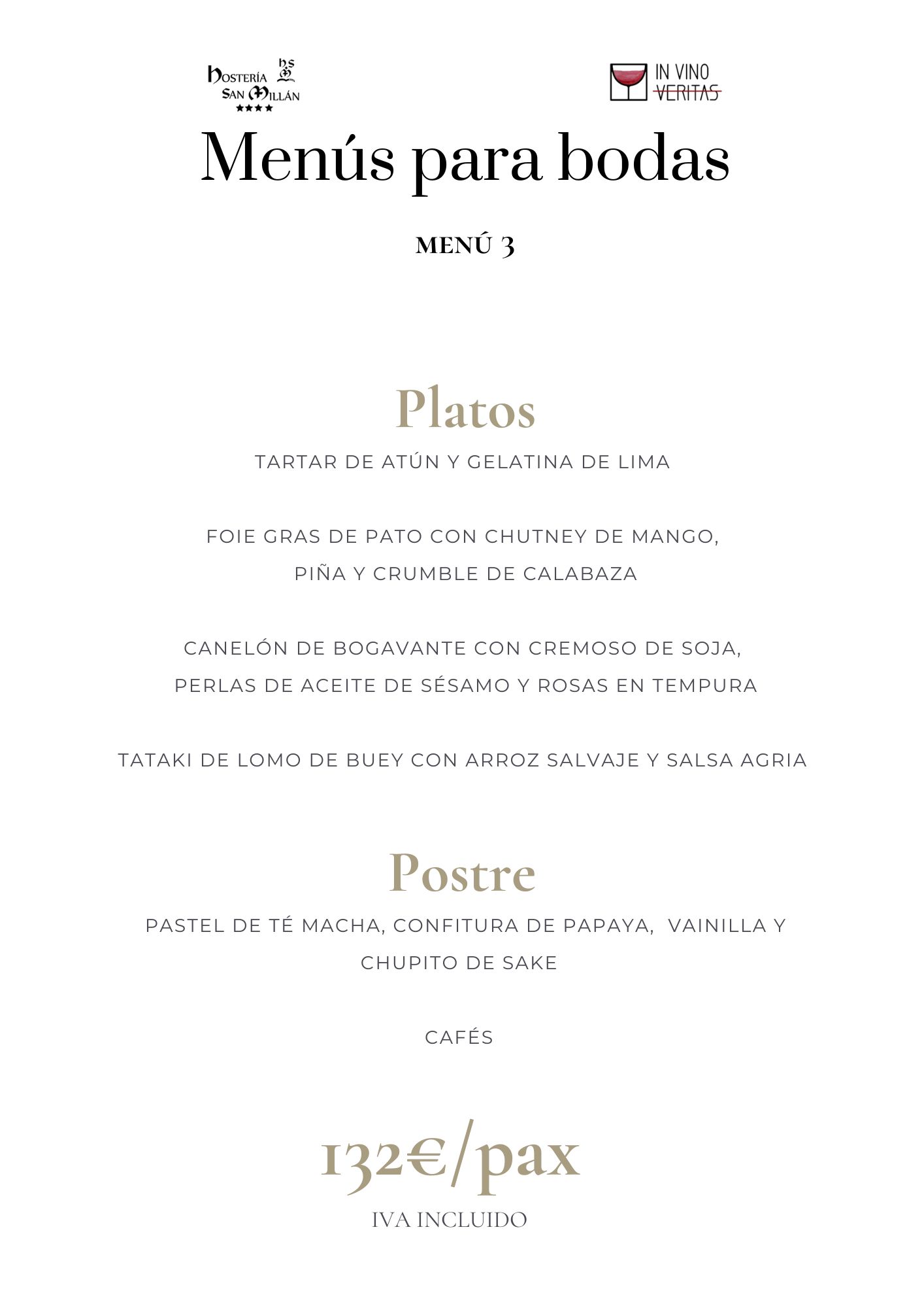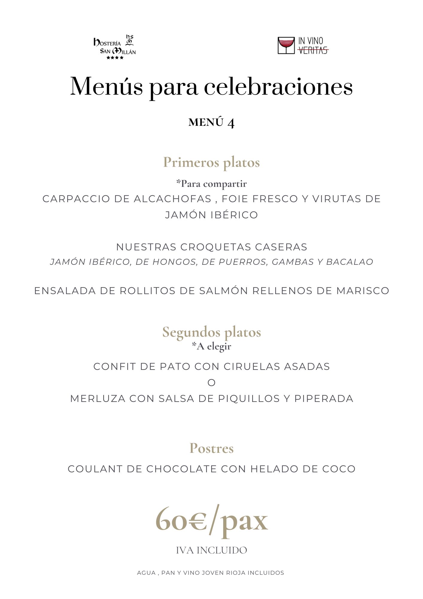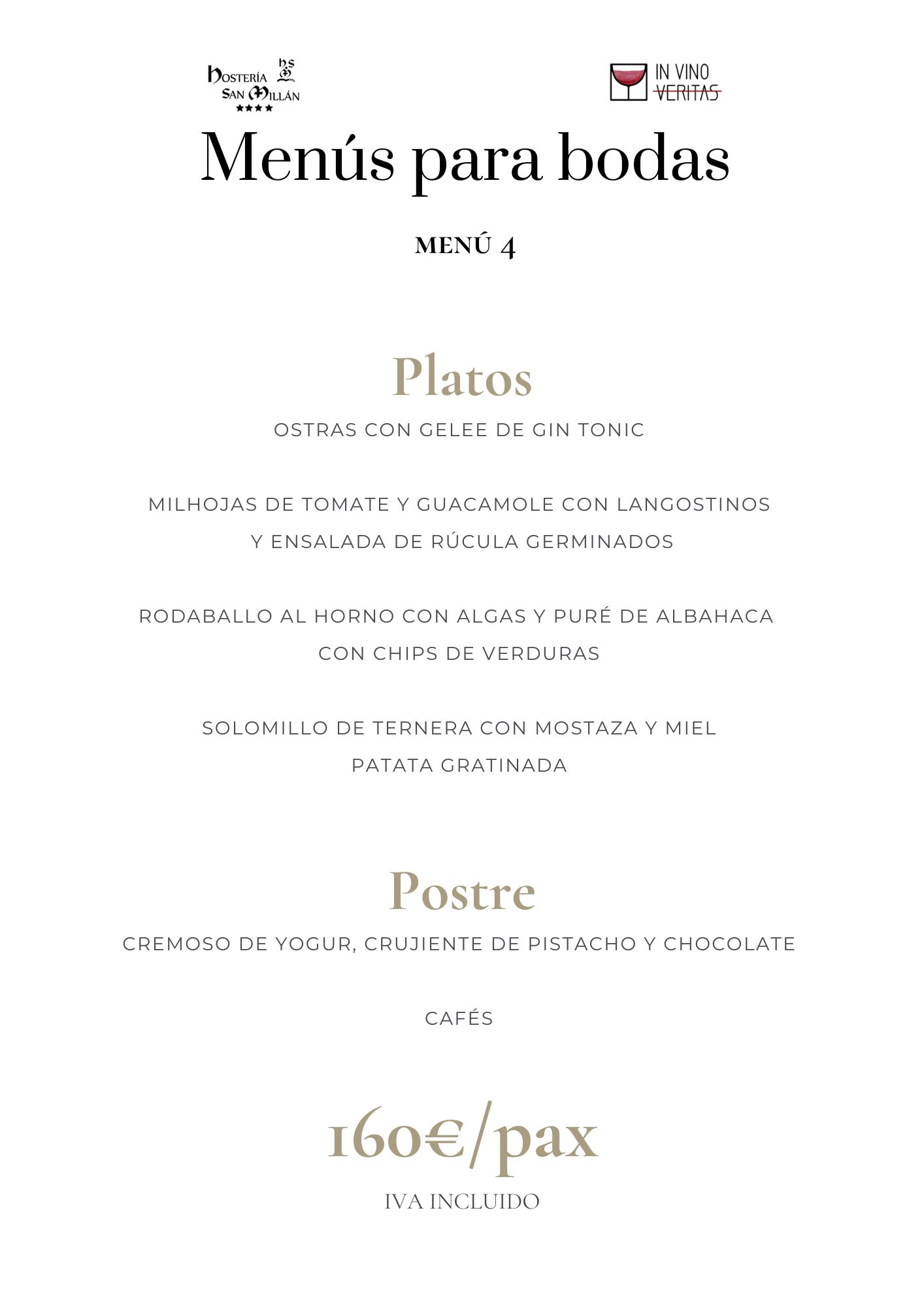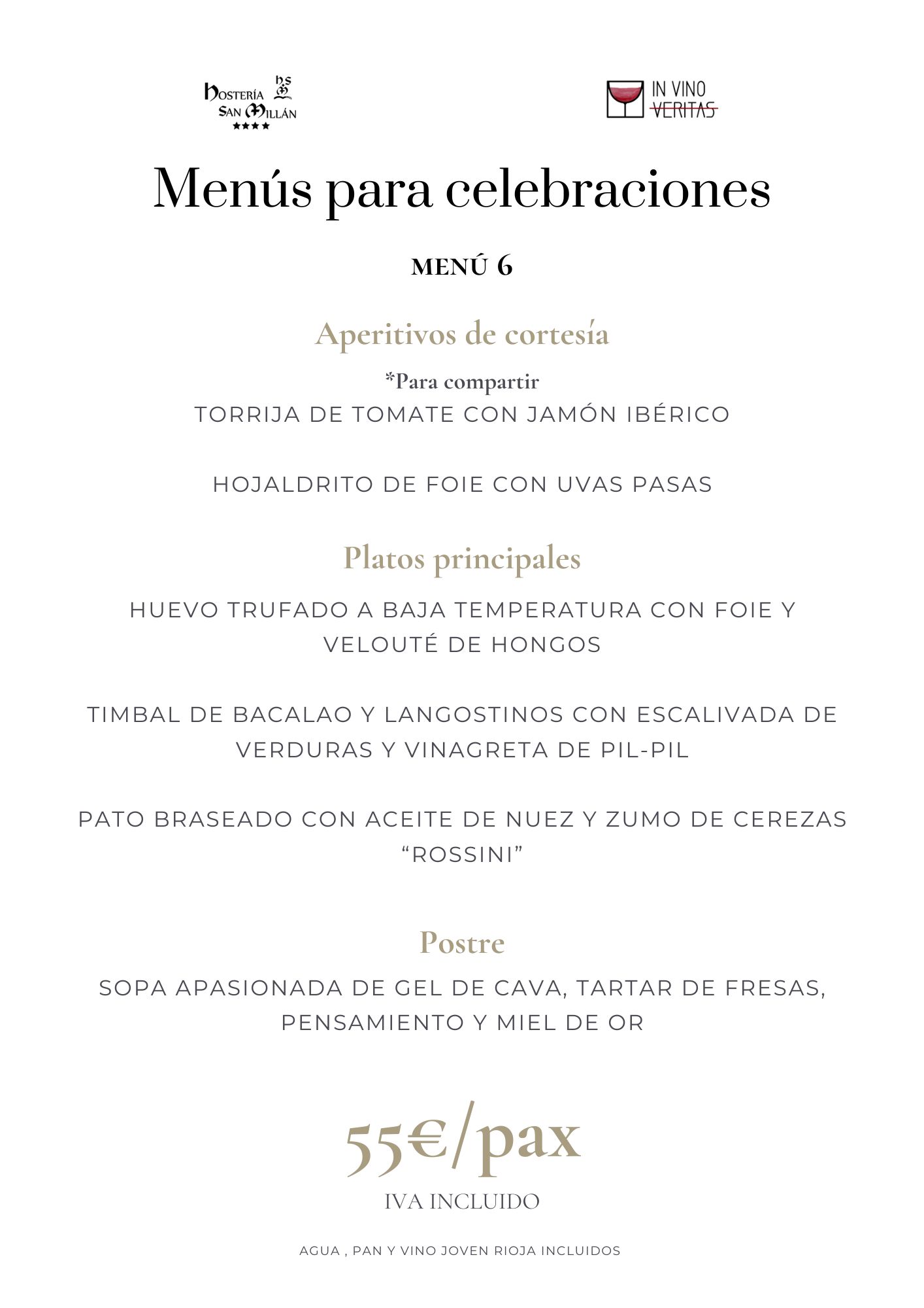 En Hostería San Millán y nuestro restaurante «In Vino Veritas» ofrecemos menús personalizados para grupos y eventos. Propuestas gastronómicas de todo tipo diseñadas para satisfacer todos los paladares y ocasiones. Desde viajes de grupo, hasta eventos corporativos, familiares o bodas con encanto.